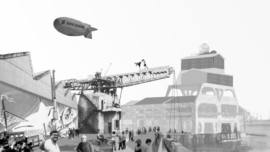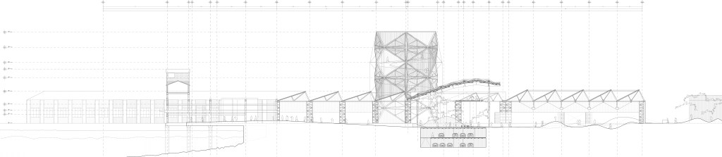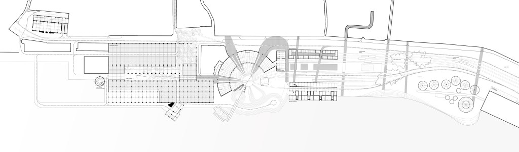 The complex has as a cornerstone a colavorative offices in which we hypothesize that the swiss company Ericson lodged its proposal «Ferari», initiative stagnant since 2016, which aims to convert the city of Rijeka into a «Smart City» connecting all users of a series of applications on electronic devices using the «Big Data» as a tool. These offices are located in the west wing of the complex in the Torpedo Sheds that had been in use from 1870 to 1990, the year in which the torpedo company went bankrupt. These massive spaces contain a very large historical value, especially the topedo launcher platform, incorporated into the public space in the proposal.