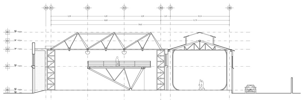 Ericson´s workers would be lodged in the residential area in the east of the complex. The first residence building will be located In what used to be the wharehouse of trains owned by the company INA closest to the coast. The second residential building will be of rental buildding, a new branch of rental that is looking for sites to be tested. The roof of these wharehouses has been designed to extend the footprint of the building.