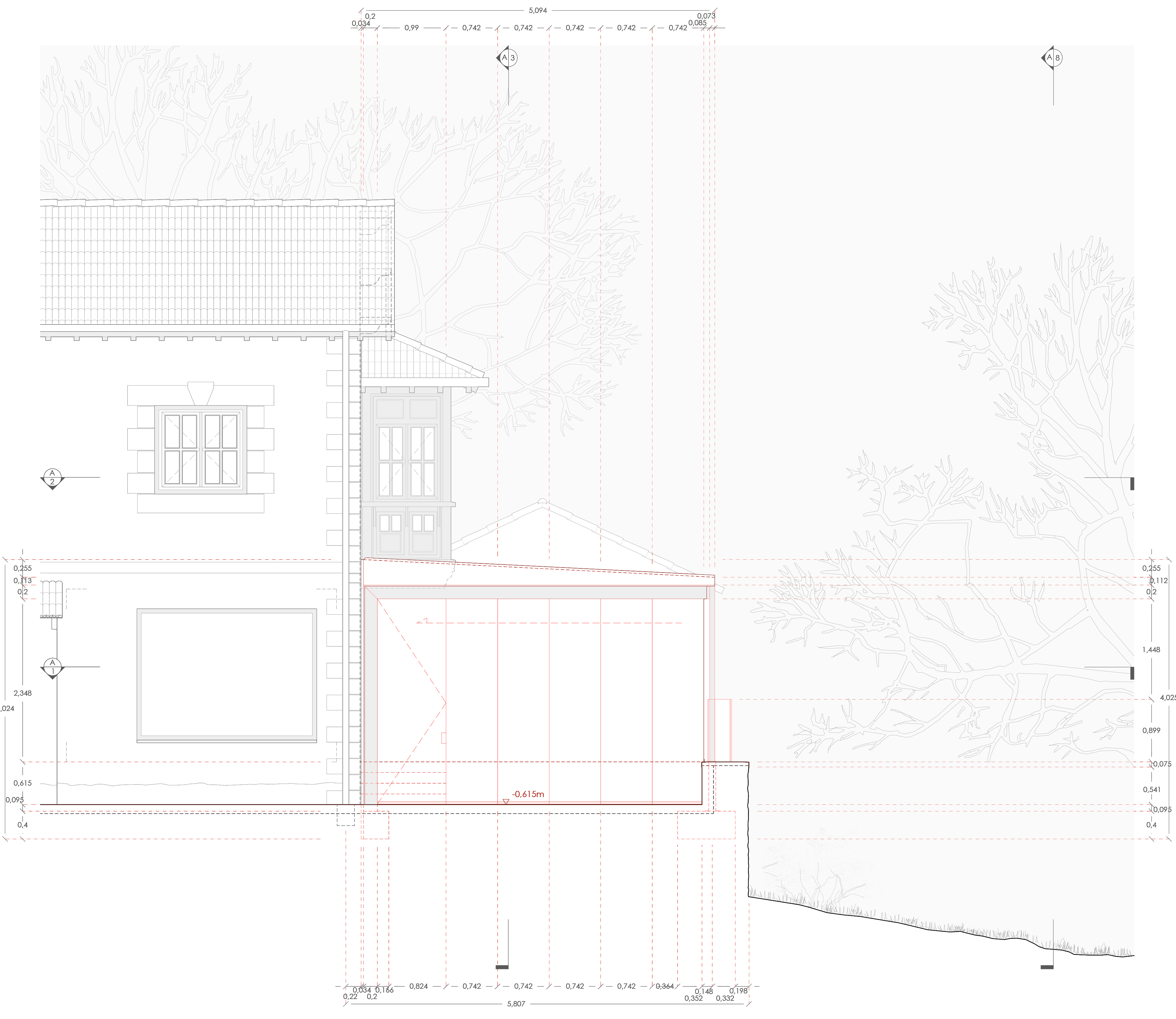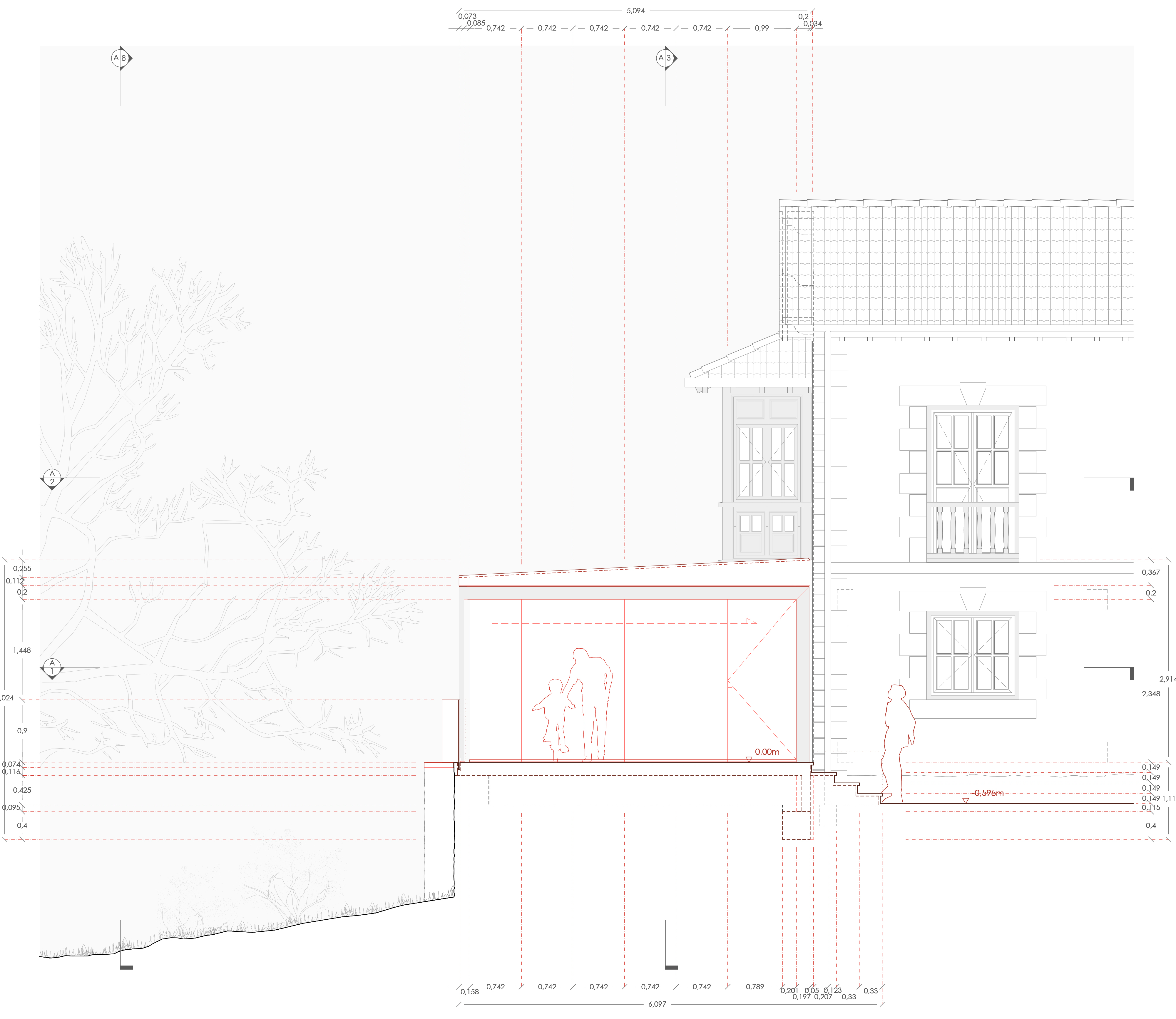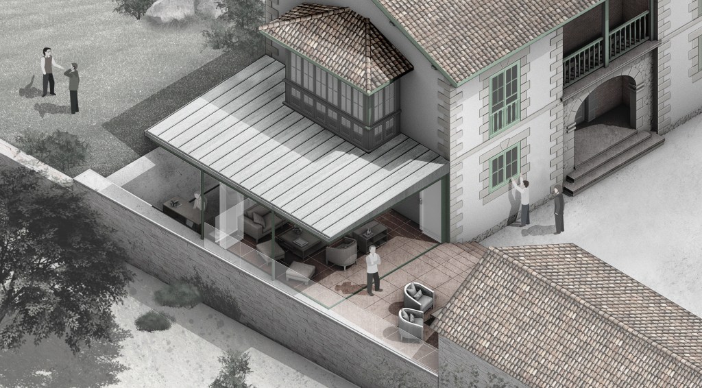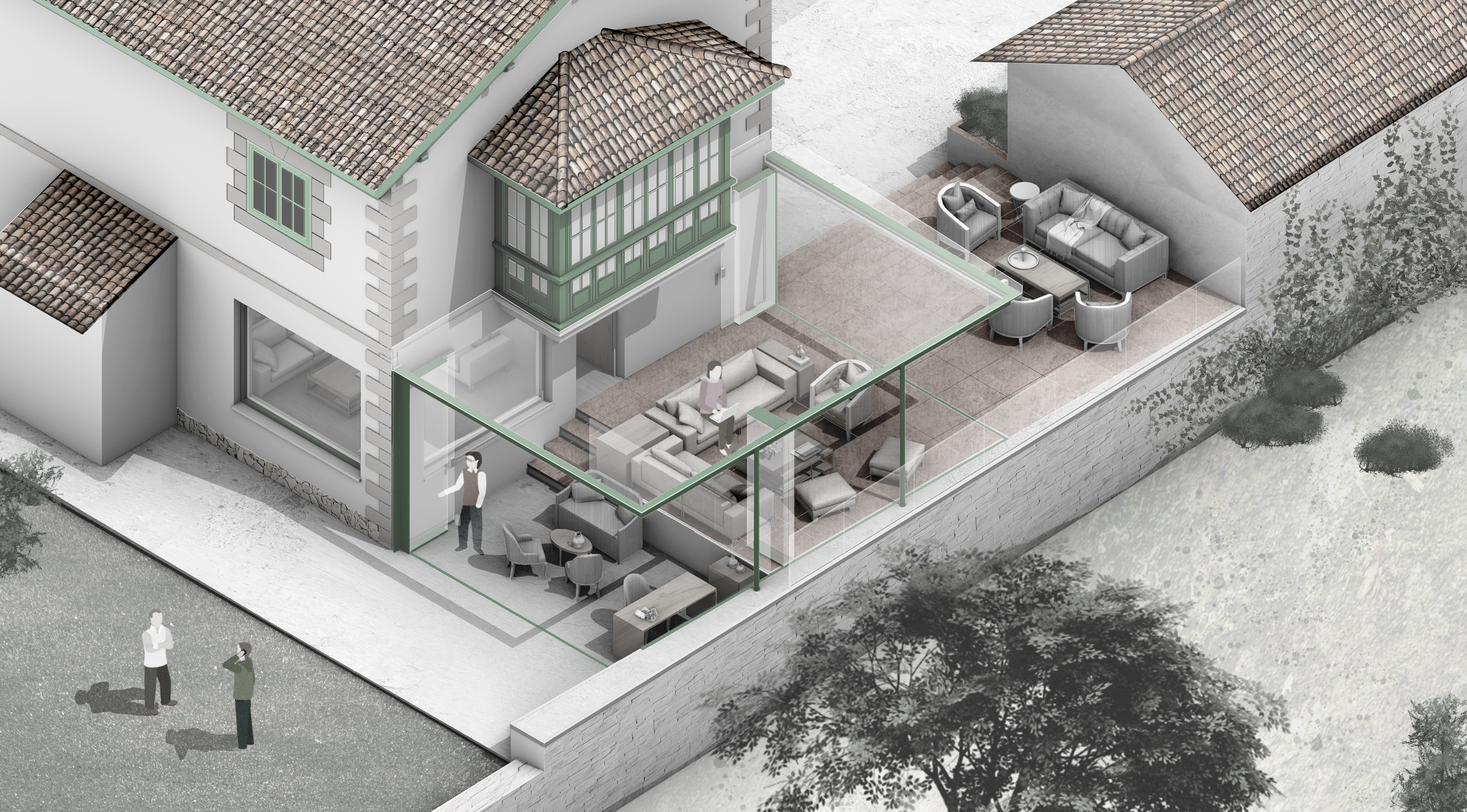 The house object of the extension is a construction of two heights above ground, rectangular and covered with gabled, with the main access on its eastern façade and a small viewpoint to the south. The purpose of the property is the creation of a porch on the ground floor on that south façade, which gives continuity to the living room.